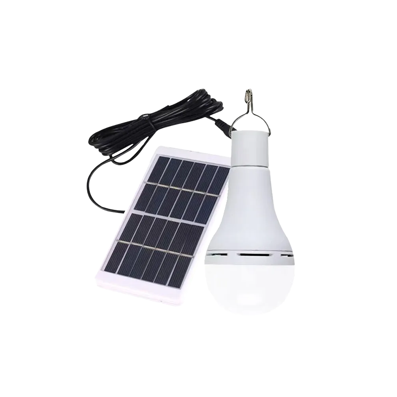 - The LED bulb includes a built-in battery, chargeable by solar panels or mobile phone chargers.